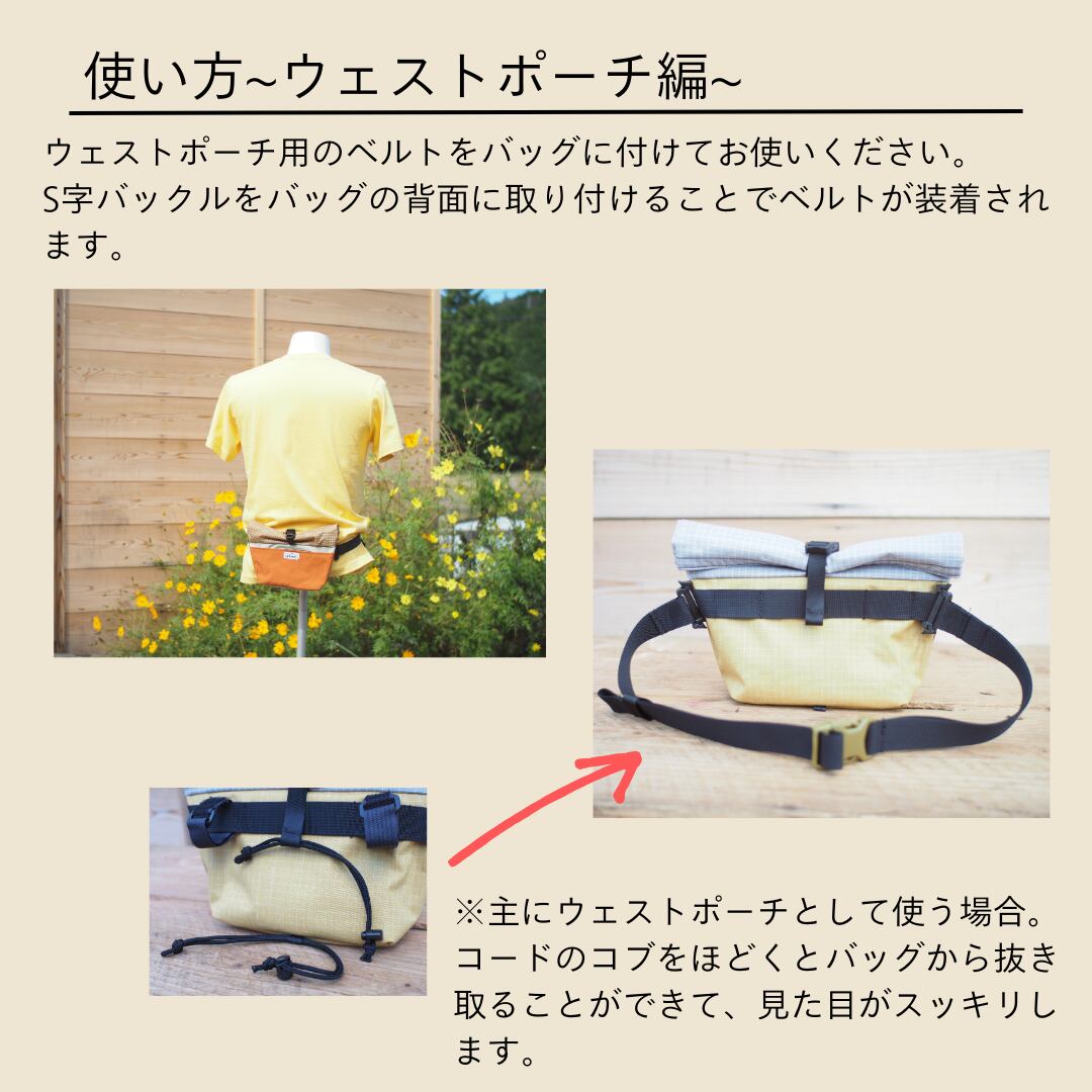 サイクリングのお供として、またウェストポーチとしても使うことができる、小ぶりなバッグです。