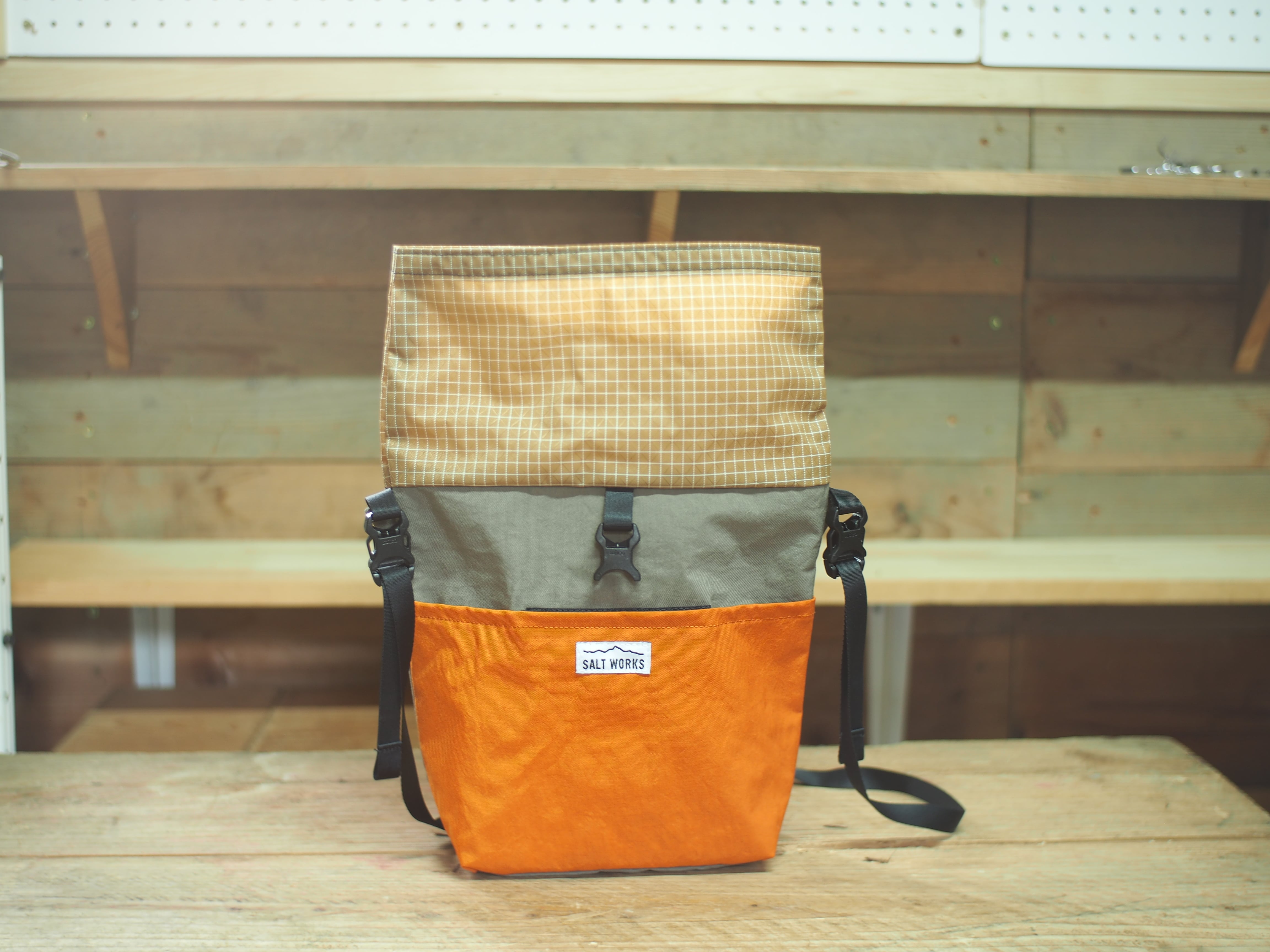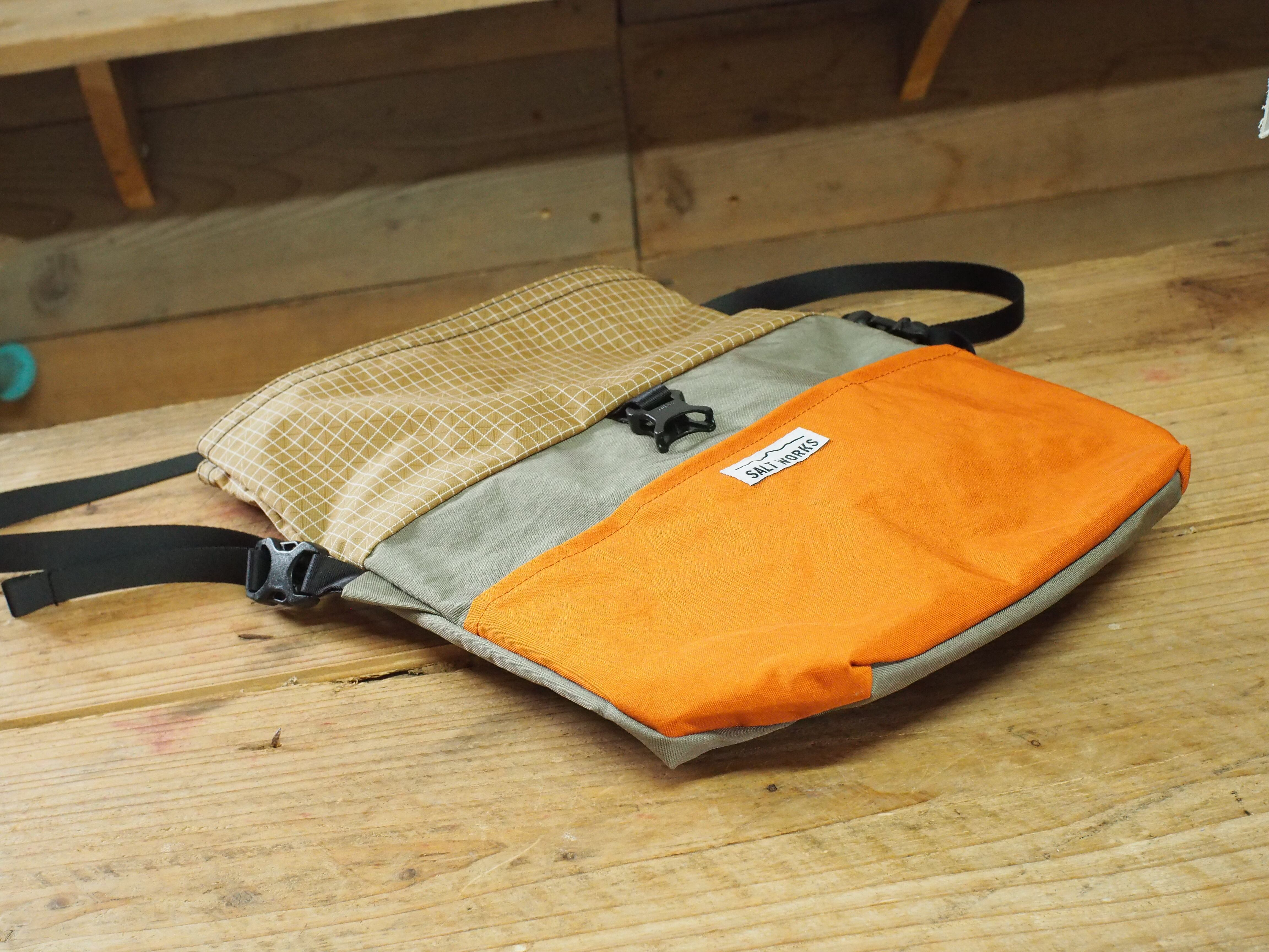 帆布バッグのような風合いで、アウトドア用途はもちろん、普段着にもよく馴染みます。